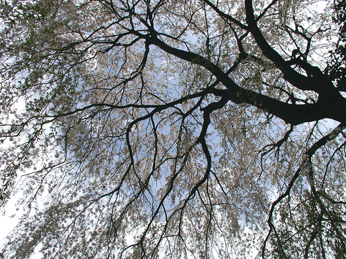 デジカメを真上に向けて持ち、桜の下に入り込んで撮りました。