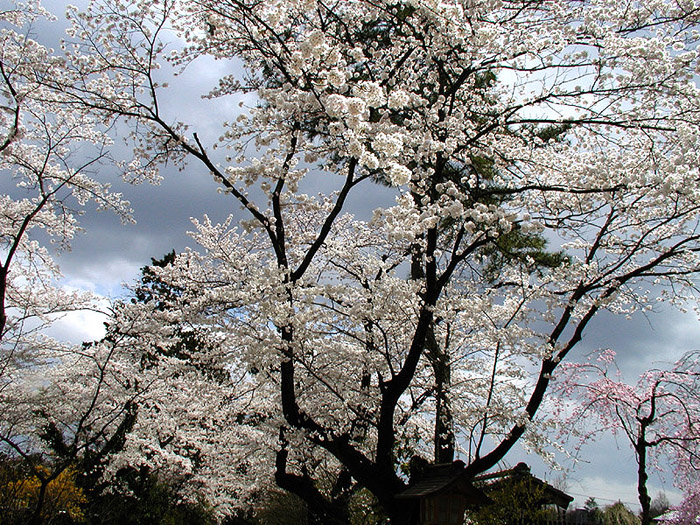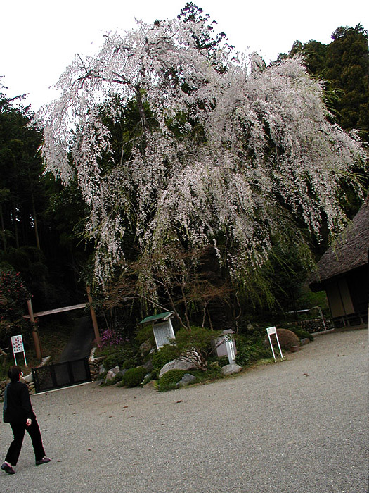 高麗家(こまけ)のしだれ桜全体を縦に撮った写真です。