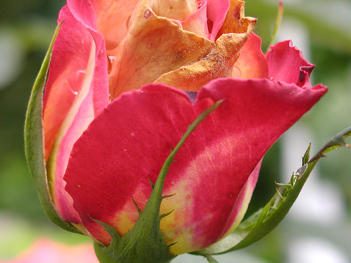 画面全体にバラの花の部分が一つだけ、大きく真横から写っています。